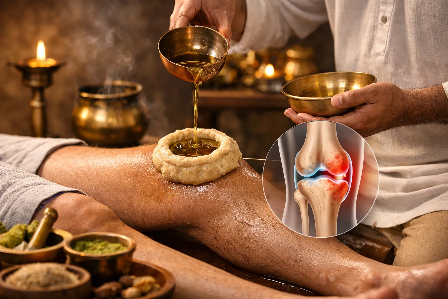 Specialized knee therapy using warm medicated oils. Nourishes joints and reduces degeneration naturally.